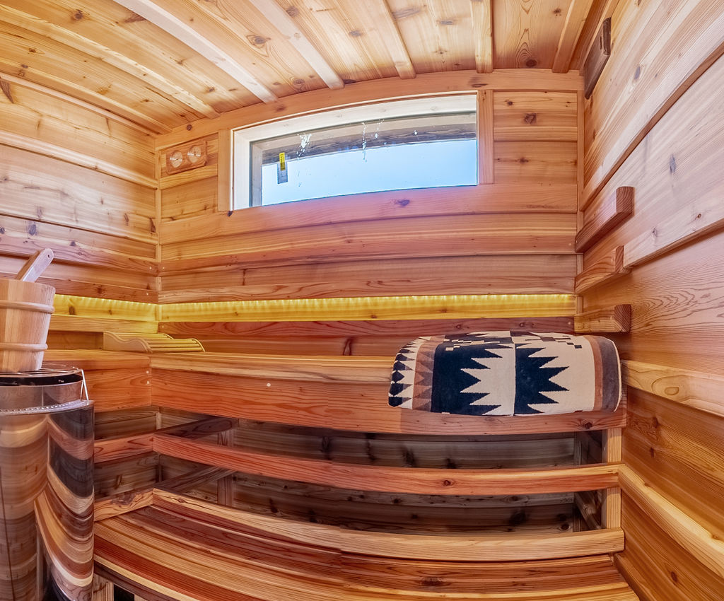 Enjoy the spa with sauna and hot tub overlooking the mountain range and a campfire with friends and family.
